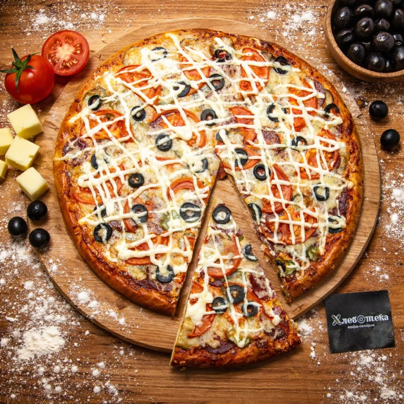 Мука , сахар, соль, вода, яйцо куриное, дрожжи пресованные, маргарин, молоко, чеснок, томаты, сыр моцарелла, заливка для пиццы,
